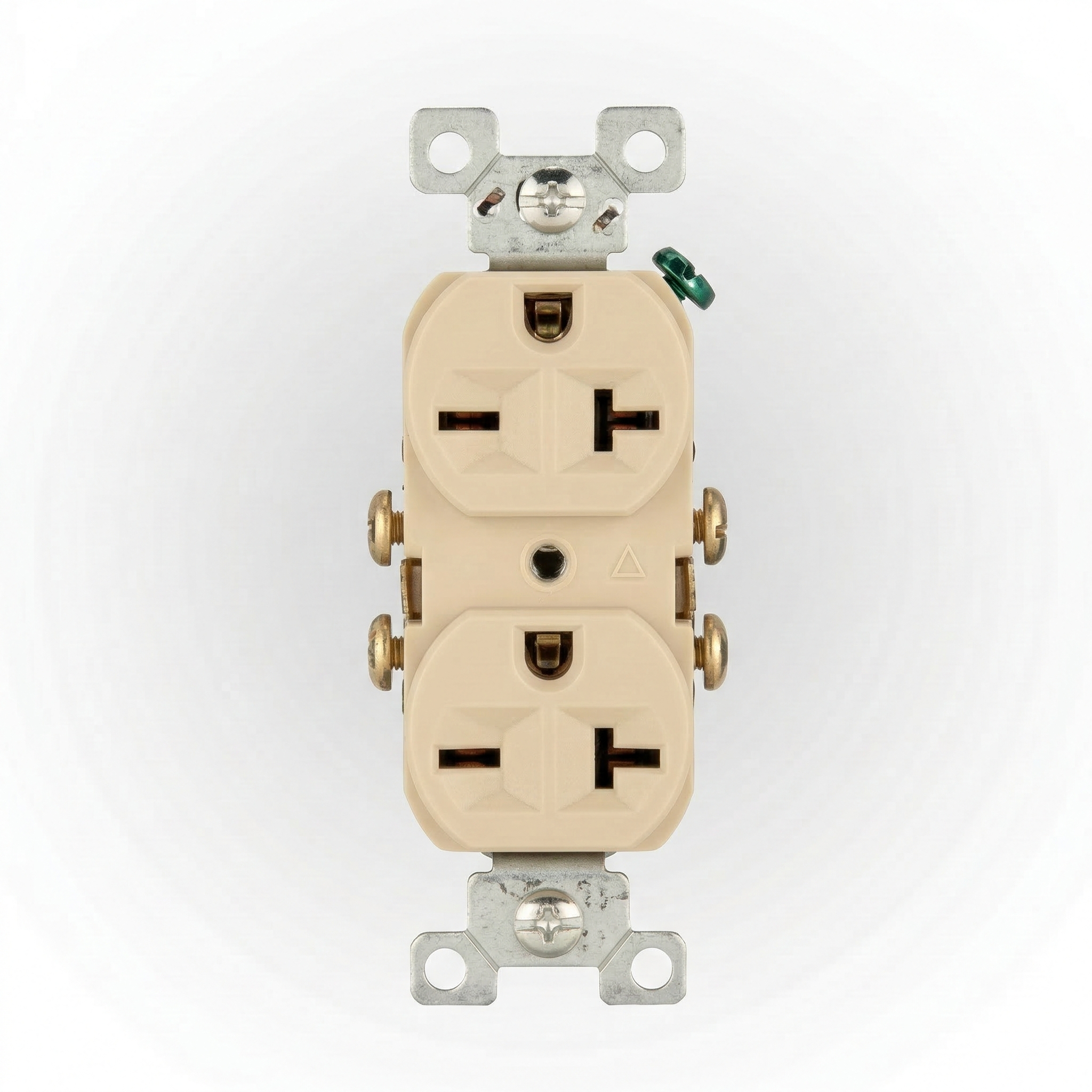 Voltaje: 220v Amperaje: 20amp Ojo chino, tomacorriente para empotrar en cajetín.