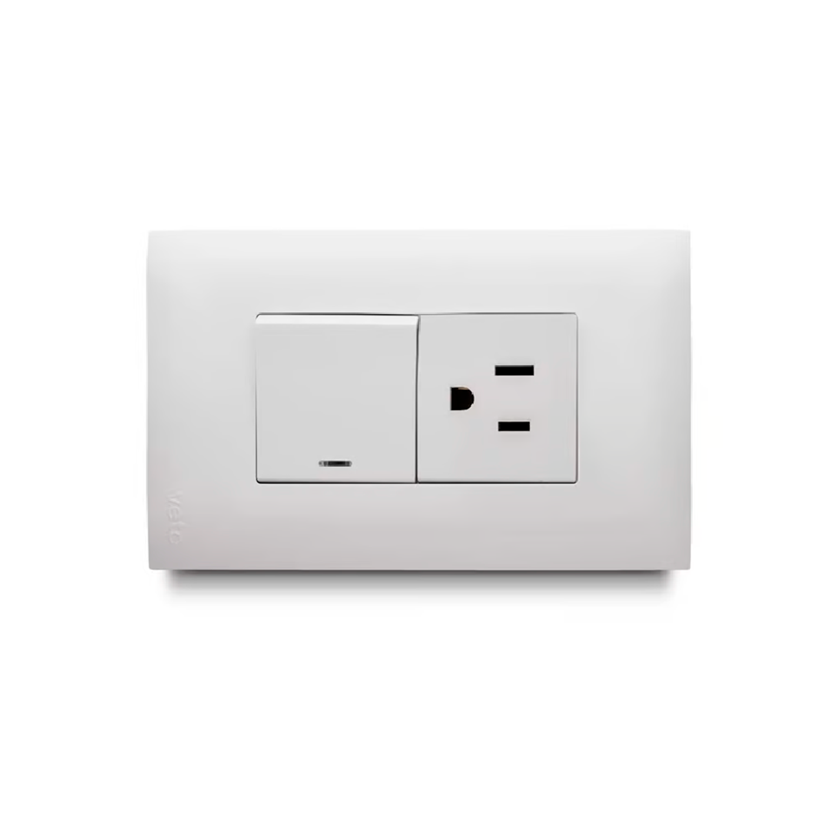 Color blanco, Toma 125/250v-15amp+interruptor con luz pilotot 125/250v-10amp, fabricado en policarbonato autoextinguible