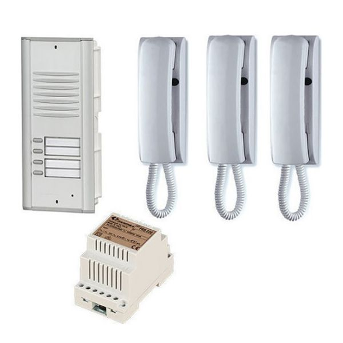 Botonera + 3 citófono blanco + transformador 12v
